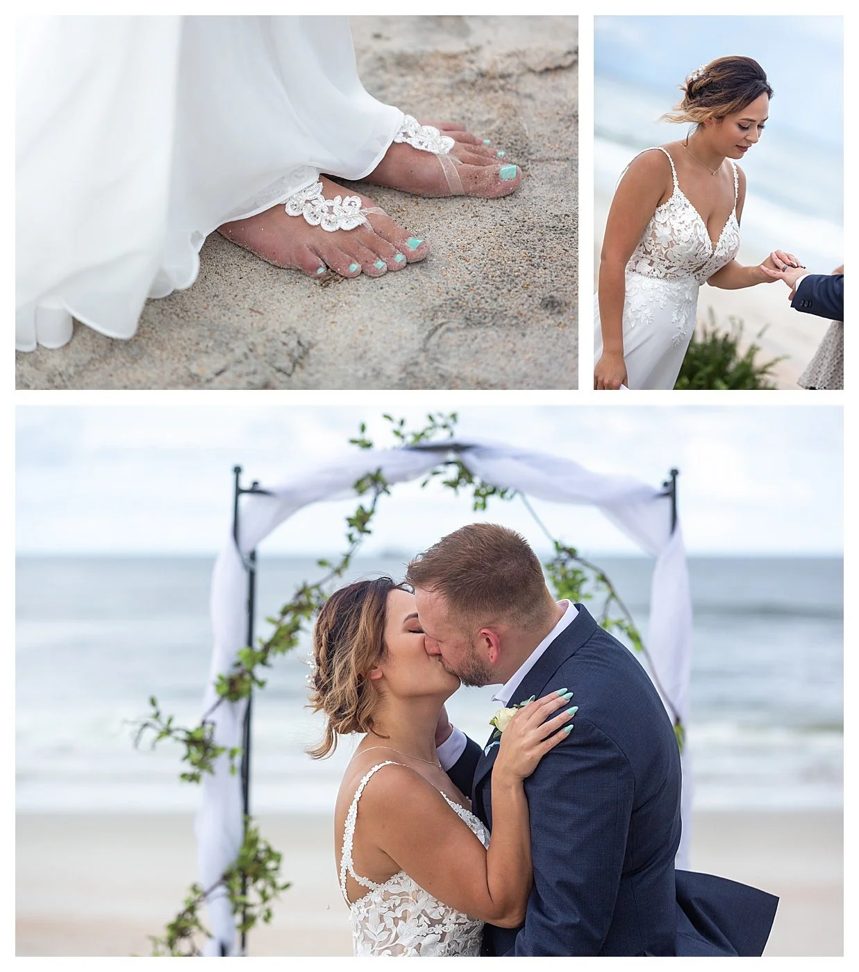 A beautiful Elopement: Love in all weather. Michelle and Alex recently exchanged vows on the beach directly behind the Beachcomber Cottages on Vilano Beach. When I think of a good marriage, the words "weather any storm together" come to my mind. So I guess it was fitting that this lovely couple celebrated their vows in the sunshine as a Florida afternoon storm rolled in from the west. As they kissed, the sky cracked in a beautiful display of nature's power. Michelle and Alex danced in the sand as the sky darkened, and we achieved some fantastic photos in the rain before running for shelter. I had a great time with these two because they have an excellent, fun-loving attitude and were willing to weather the storm for a few great photos with me! Congratulations!